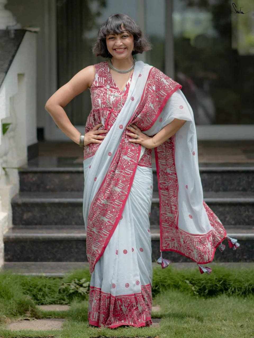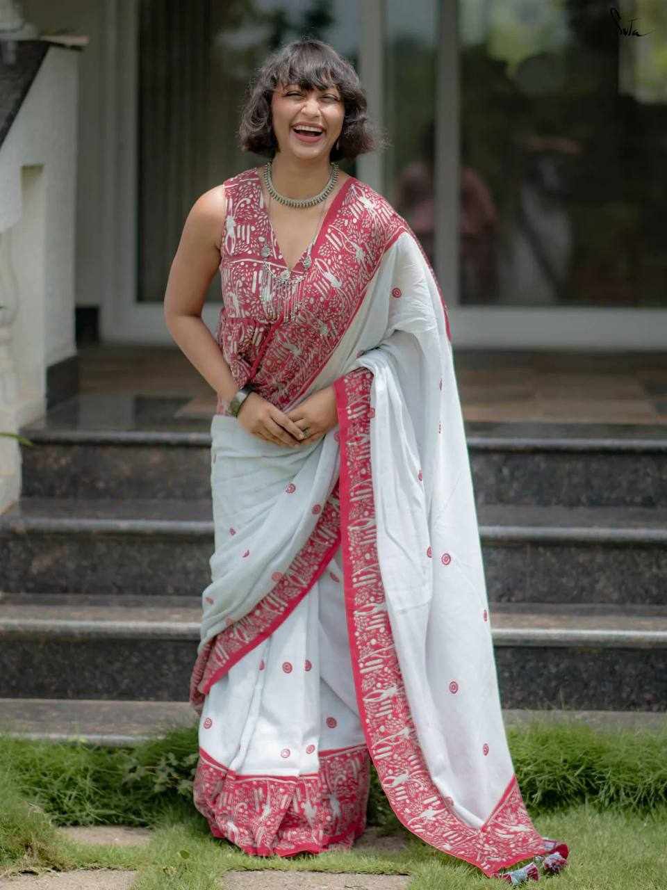 Saree Fabric: Premium Linen Cotton with beautiful digital print